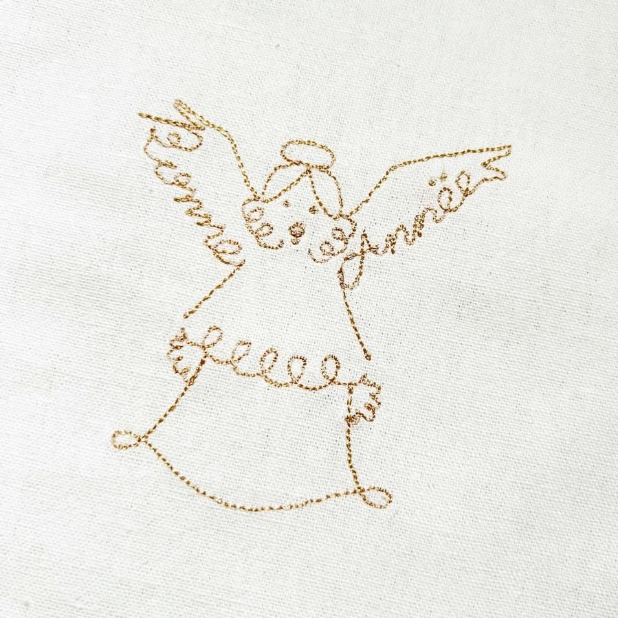 年越しの天使の両羽には、フランス語で「あけましておめでとう」を意味することばをデザインしました。